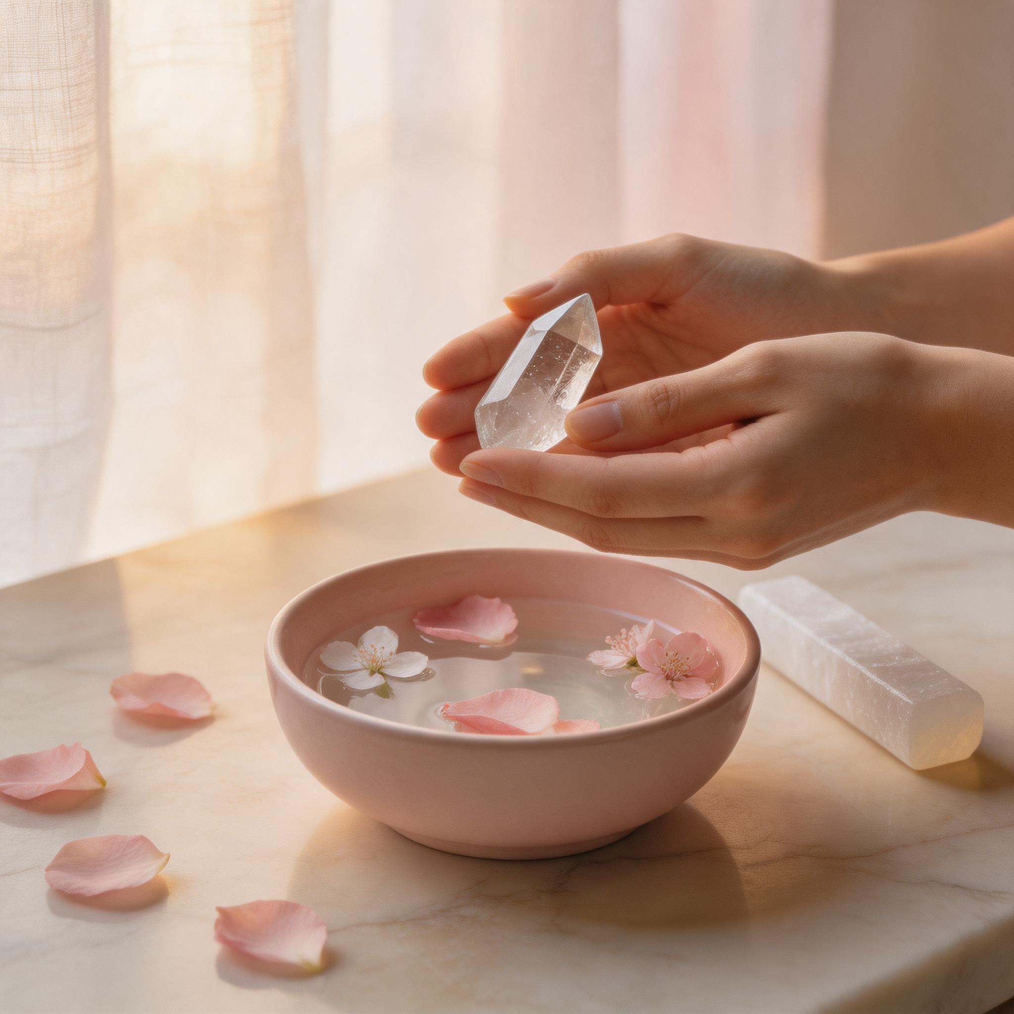 Sound: Use a singing bowl or tuning fork near your crystals. Sound vibrations effectively reset energy without physical contact.